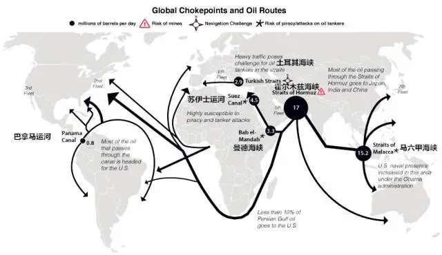【无所不能 文|庞名立】李白诗《蜀道难》曰:“剑阁峥嵘而崔嵬,一夫当关,万夫莫开”。国际石油海运也有这种情景,国际石油贸易船只经由峡口,如遇堵塞,就像咽喉卡住一样就麻烦大了。