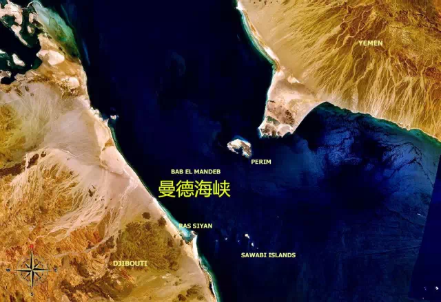 ⑵ 曼德海峡(Bab el-Mandeb)。阿拉伯语意为“泪之门”。因古代船只通过,触礁失事者多,因此得名。阿拉伯半岛西南端和非洲大陆之间的海峡,连接印度洋的亚丁湾和红海。