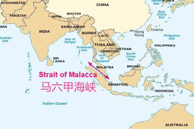 中国石油供应安全,除了霍尔木兹海峡以外,马六甲海峡也极为重要,中国进口石油约85%需要通过马六甲海峡。一旦马六甲海峡阻塞,中国能源安全就会受到威胁,因此,中国正在加紧解决马六甲海峡困局。
