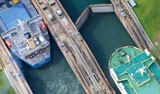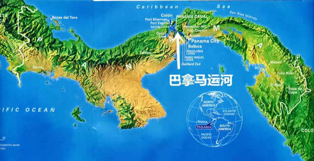 ⑸ 巴拿马运河(Panama Canal)。沟通太平洋和大西洋的国际运河,位于巴拿马共和国中部,是凿通巴拿马地峡,连接巴拿马城和科隆克利斯托巴尔港的一条国际贸易通道。