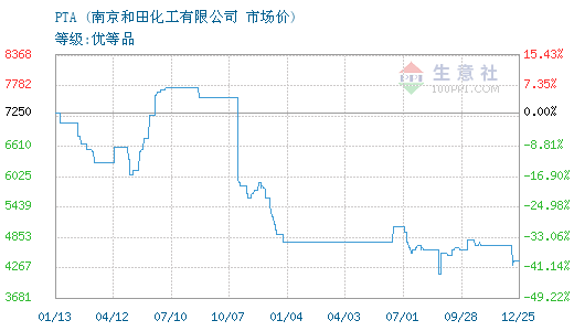 12月25日南京和田化工有限公司关于PTA的报价为4400元/吨。PTA的属性:等级:优等品。该报价有效期为3天。