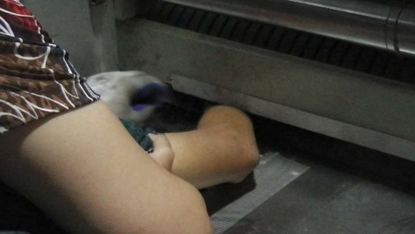据了解,男子在进行作业时,因操作不慎,导致右手手腕以下被卡在压板机两个滚轴之间。