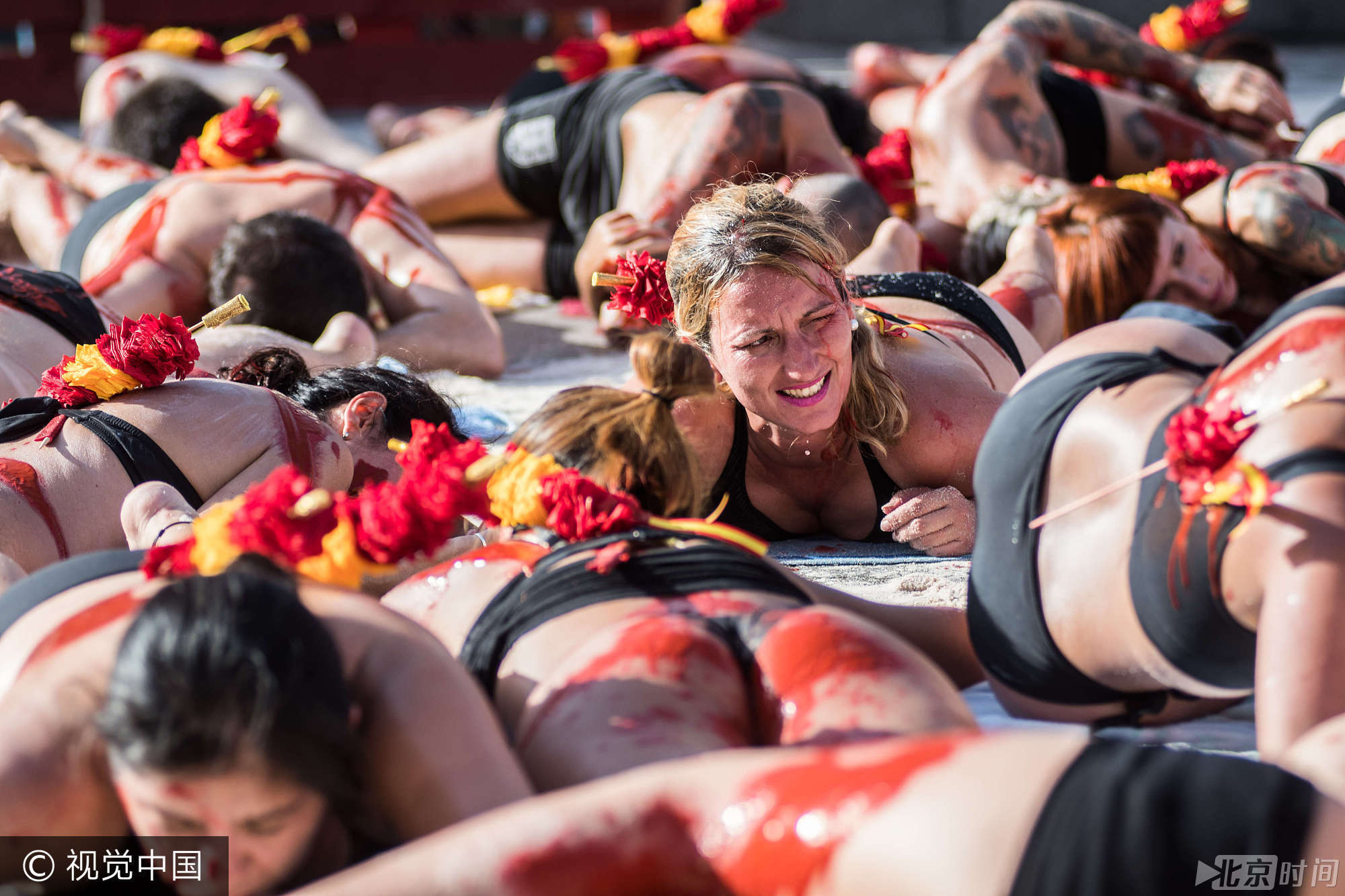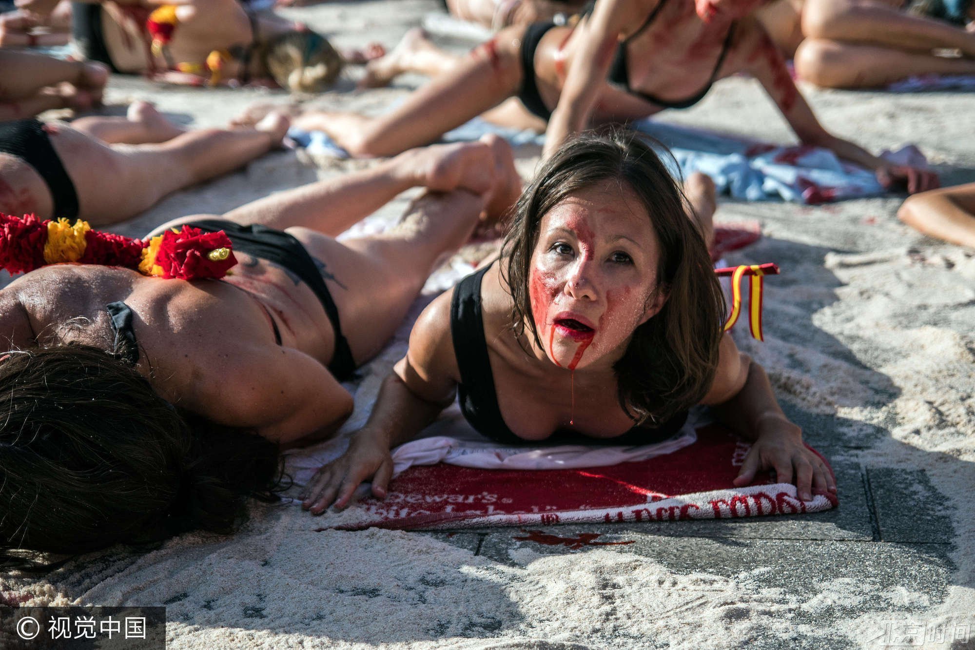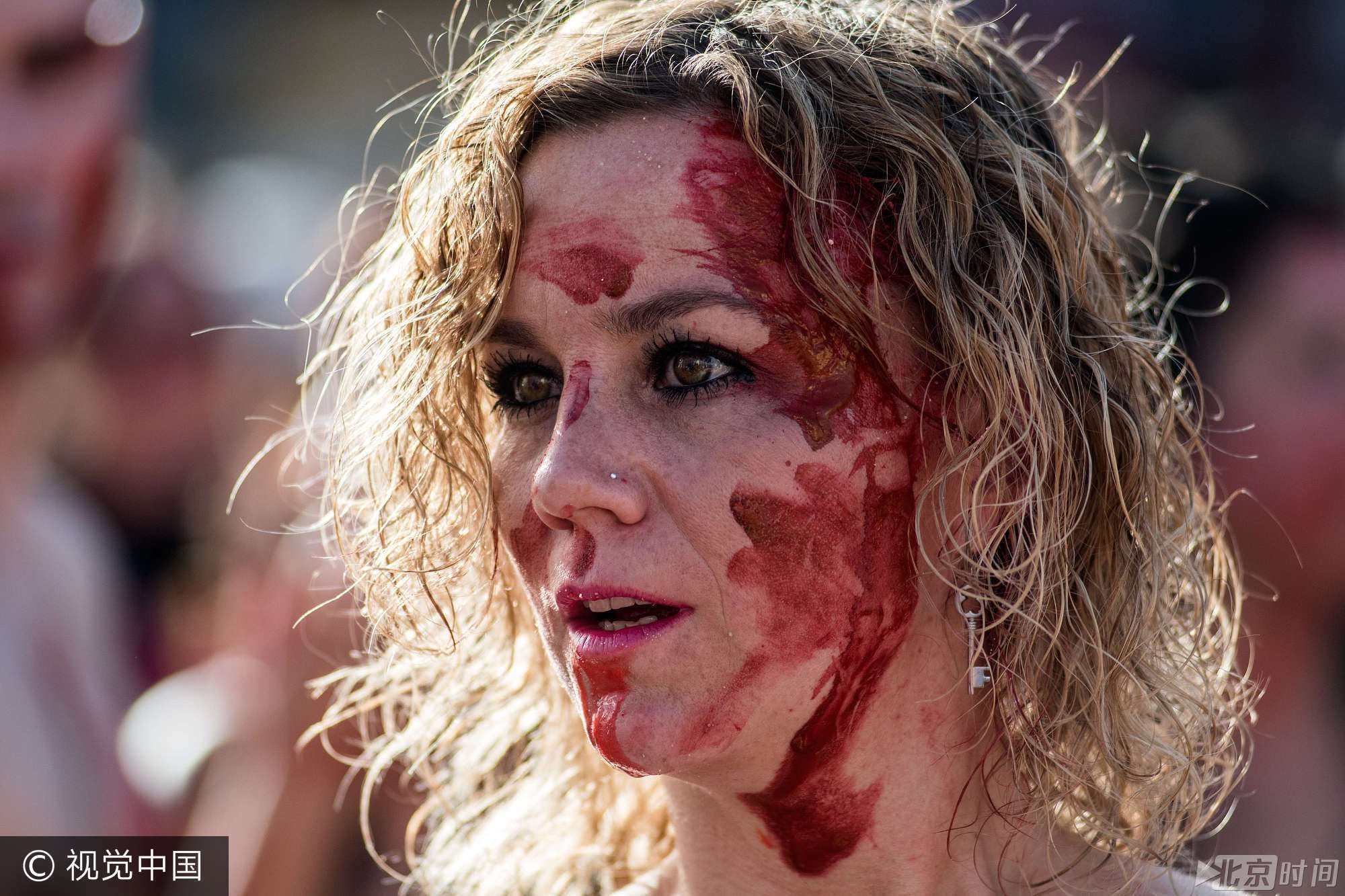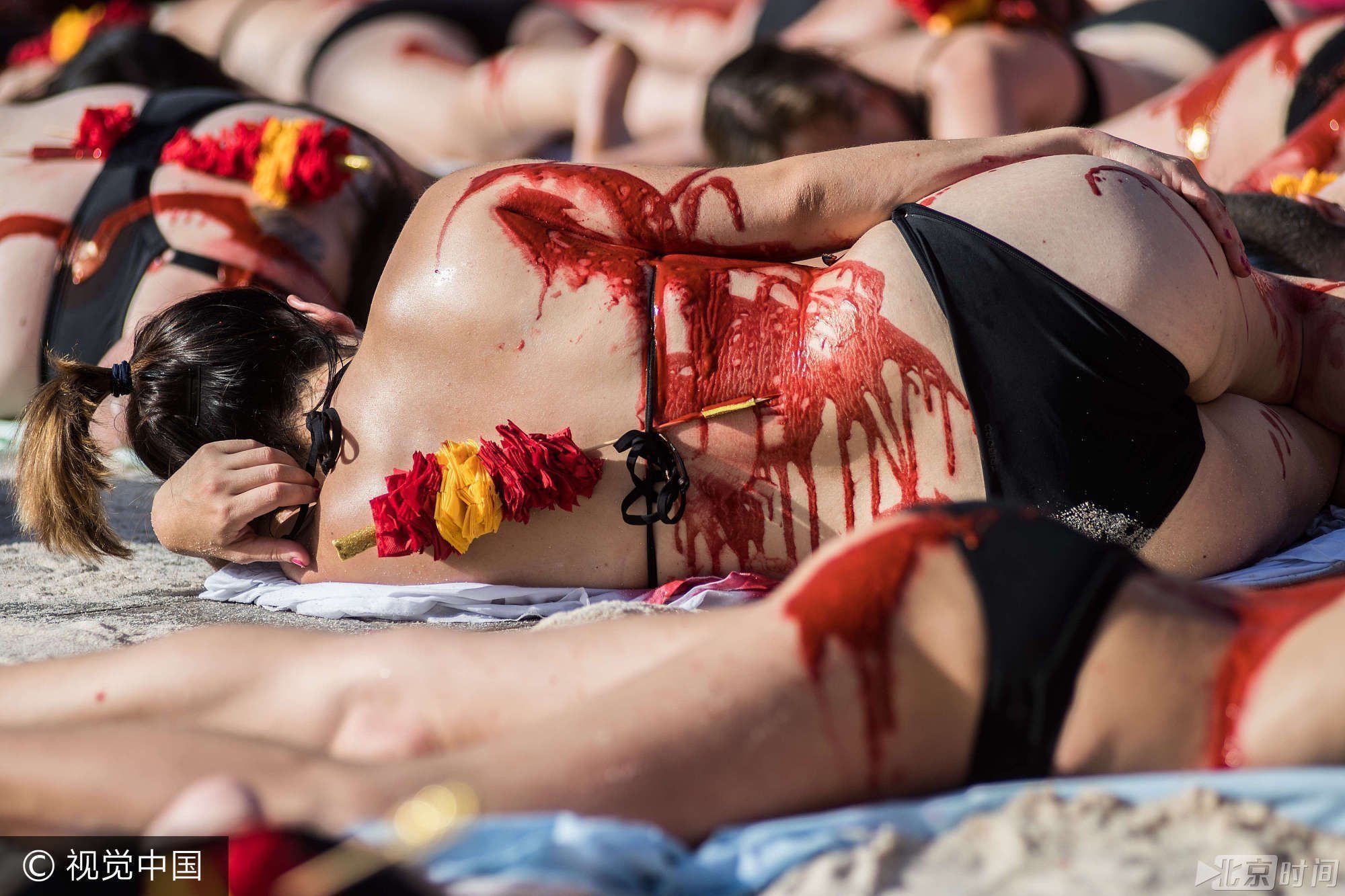 我们都知道,西班牙是世界上 的王国”。有人说:在西班牙没有不斗的节日,也没有不爱看斗的地区。近年来每年有5000万外国游客进入西班牙,而他们之中的大多数是奔着看斗而来的。但近日,在西班牙马德里,当地活动家脸上涂满假血,上演了“反,“浴血”再现被牛场景